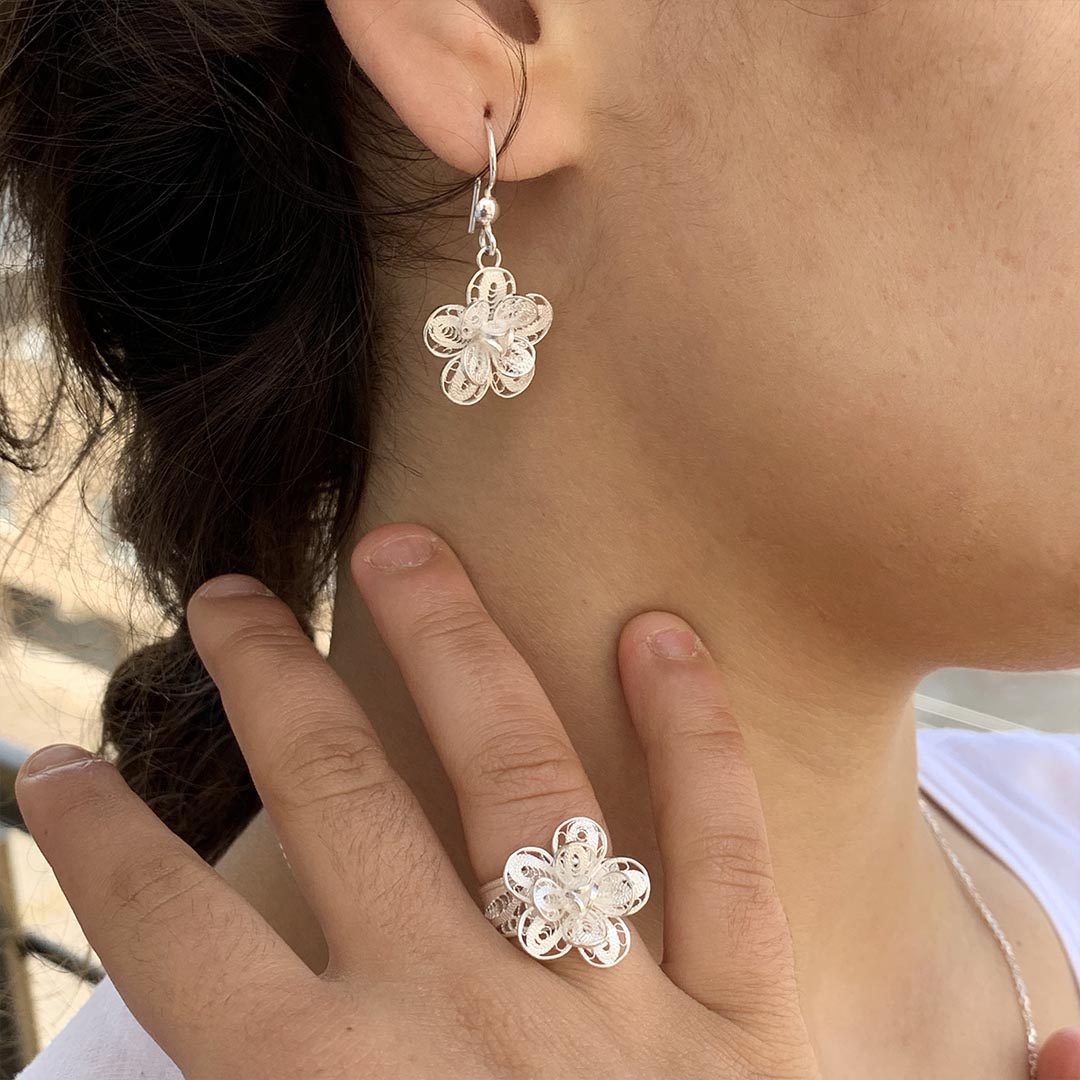 Çiçek Tasarım Telkari Gümüş Bayan Üçlü Set MTD2048
