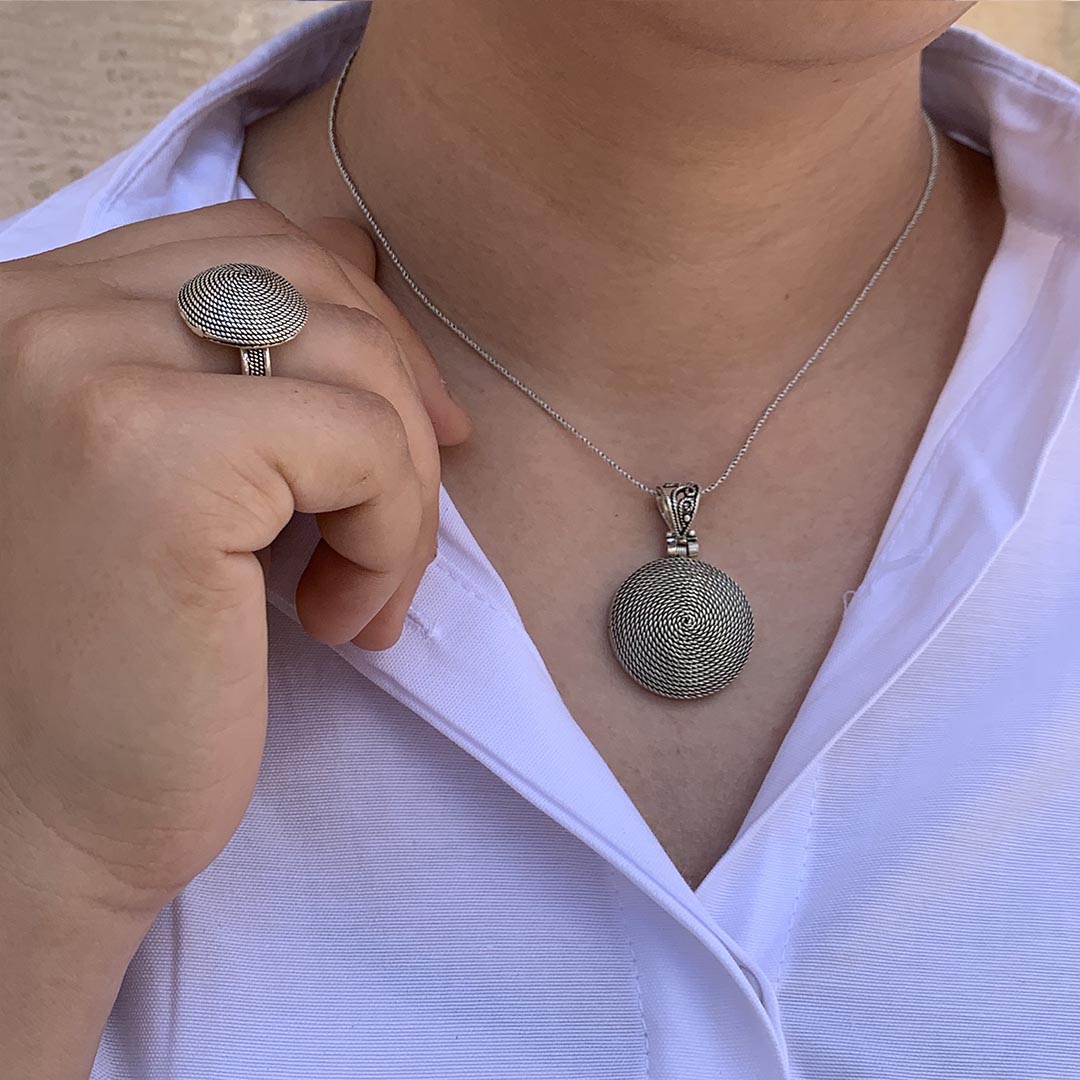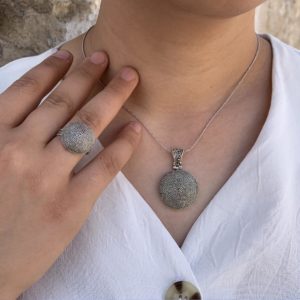 Sarma İşlemeli Mardin Hasırı Gümüş Bayan İkili Set MTD2958