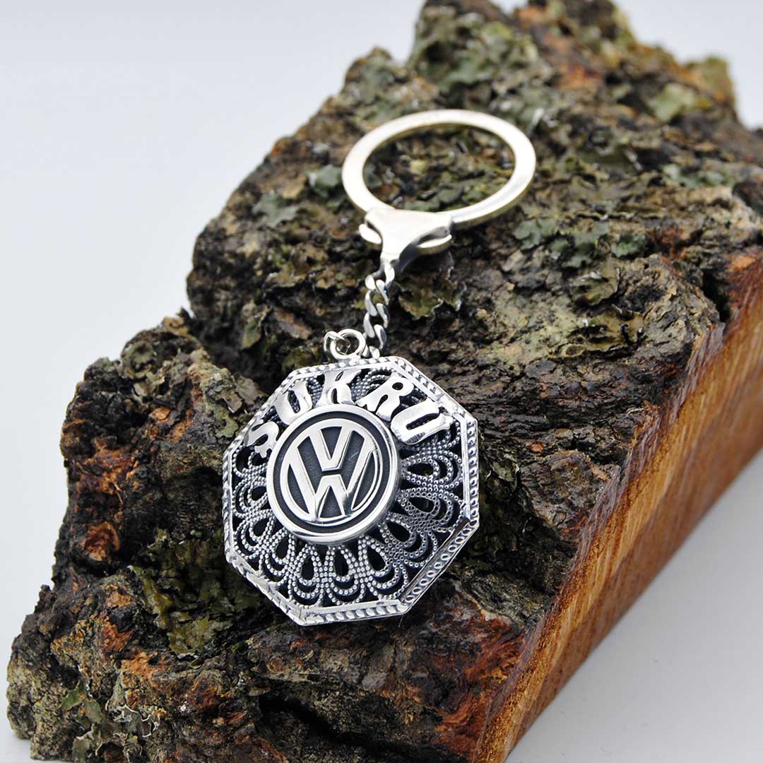 Volkswagen Amblemli Kişiye Özel İsimli Telkari Gümüş Anahtarlık